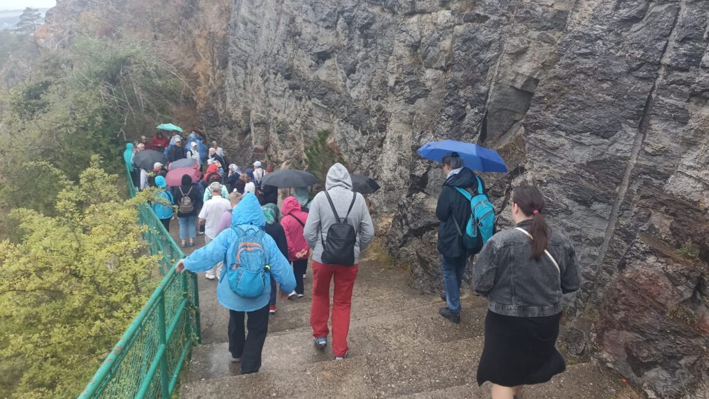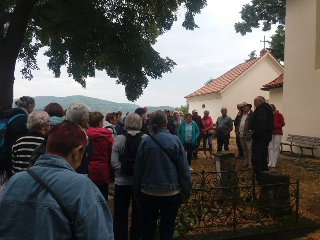 Z podzemí jsme se za přetrvávajícího deště přesunuli do Tetína, místa s bohatou historií spojenou se svatou Ludmilou. Déšť sice pokračoval, ale atmosféru to vůbec nezkazilo. Prohlédli jsme si tetínský kostel a další pamětihodnosti. Atmosféra místa nás vrátila o staletí zpět, a my si s úžasem prohlíželi, kde se psaly dějiny. Putování jsme přerušili společným obědem v místní restauraci, kde jsme si pochutnali na jídle a sdíleli zážitky z dopoledne.